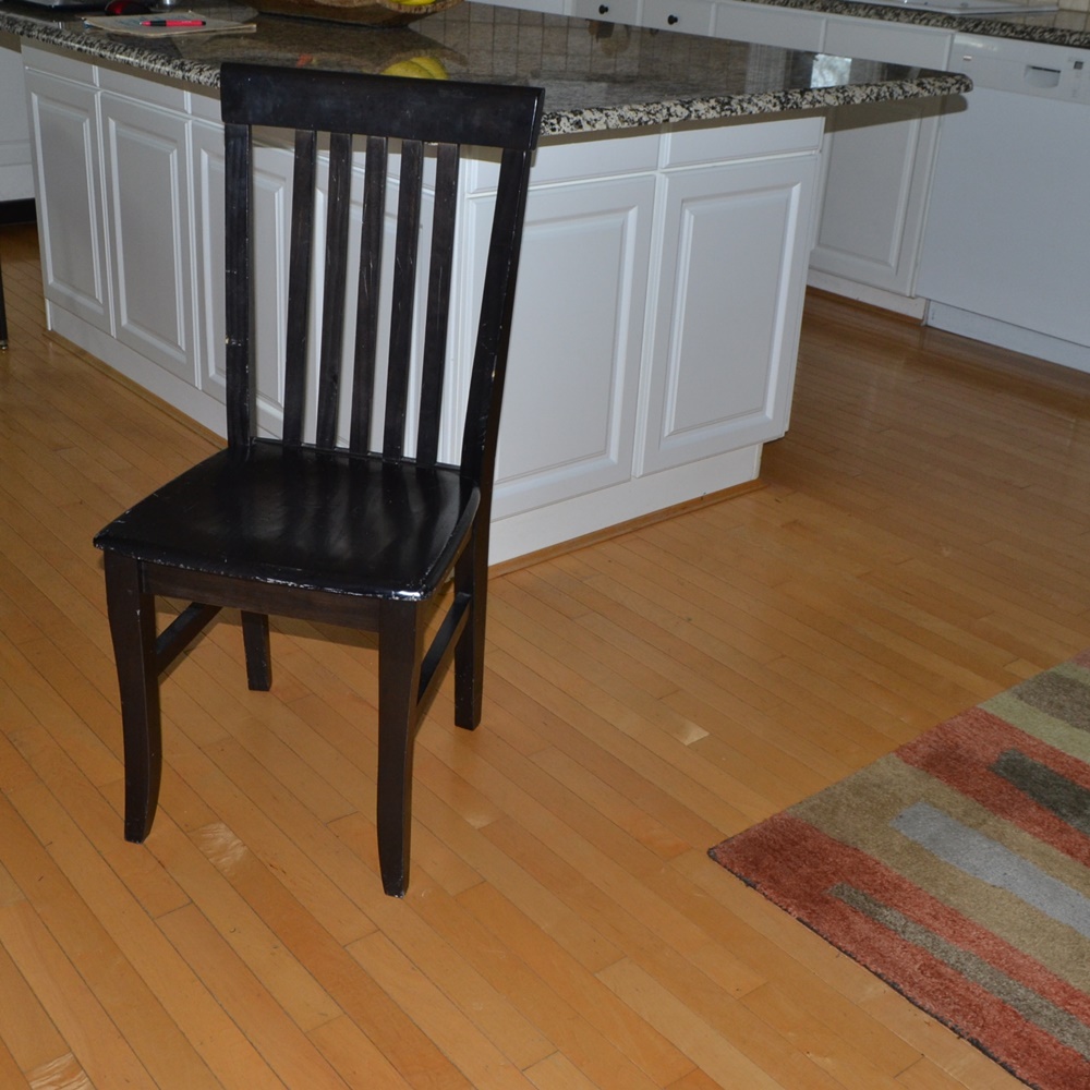 Bar stools are used at the portion of a kitchen counter that is stepped up (usually by 6″) from the rest of the counter.